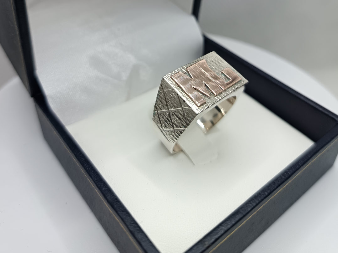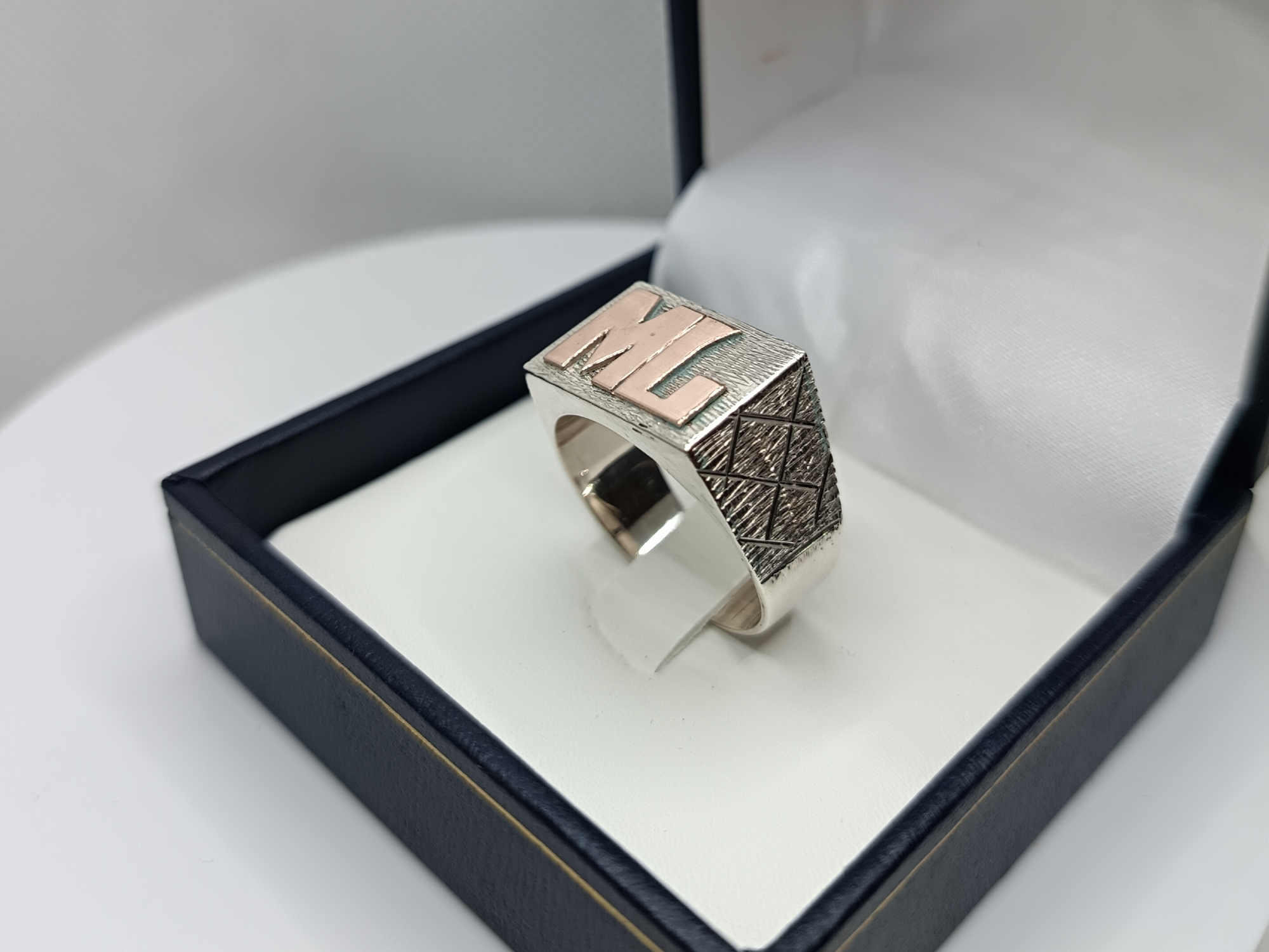 Anillo sello de hombre 12 x 16 mm Compartir Anillo sello de hombre 12 x 16 mm. Con iniciales en oro y rayas en los costados$5.700 Observaciones 0 / 150